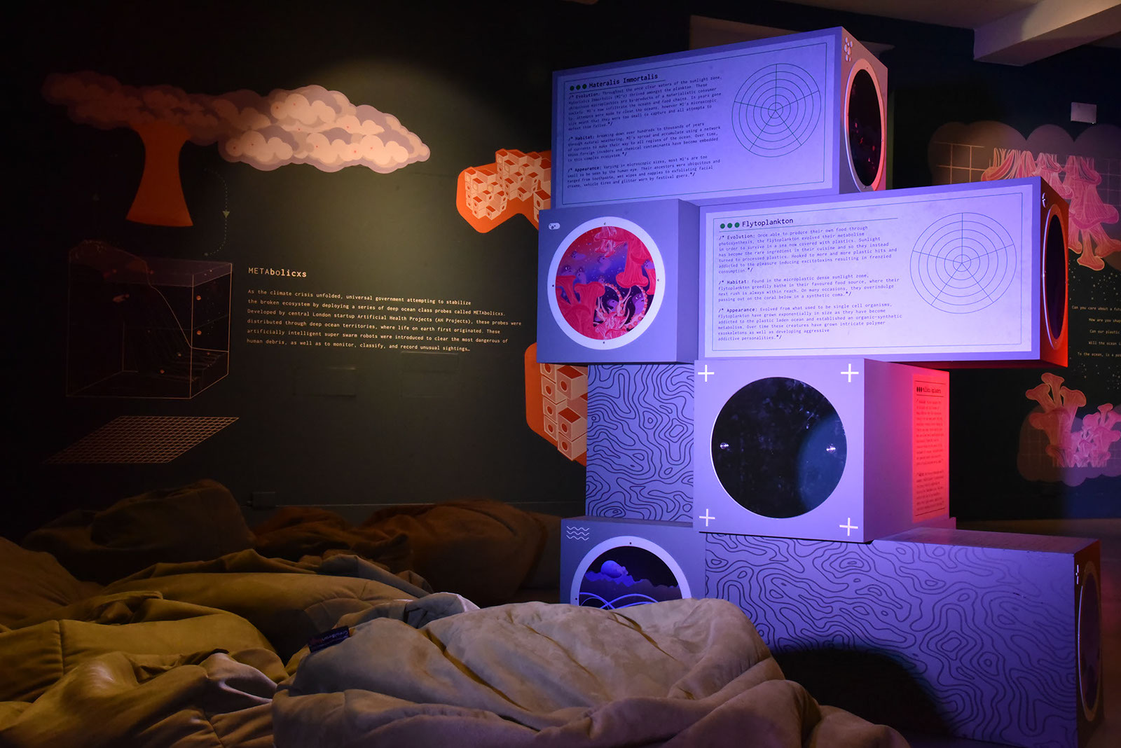 Visitors are invited to engage with future sea-creatures, ponder the unseen and distant impacts of everyday city life that are reflected in consumer culture, and re-imagine the legacy of humanity through the eyes of the ocean.